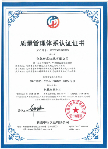 Hefei Xinqiu Machinery Co., Ltd., Ekim 2003'te 2 milyon RMB kayıtlı sermaye ile tescil edildi. Mekanik parça işleme, otomobil parçaları işleme, inşaat makine parçaları işleme ve tütün makine parçaları imalatını birleştiren yüksek teknolojiye sahip bir kuruluştur.
